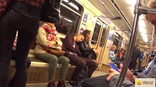 Пранк: спит на людях в метро. Их реакция