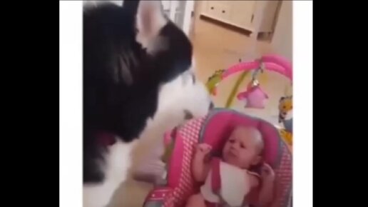 Хаски-нянька. Собака успокаивает плачущего ребенка.
