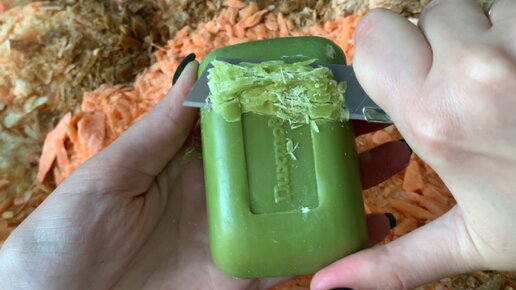 Резка сухого «Пихтового» мыла от фабрики Свобода