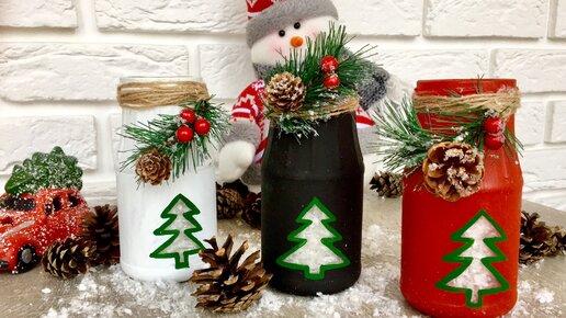 Зимний декор из обычной стеклянной банки. Поделки на Новый Год
