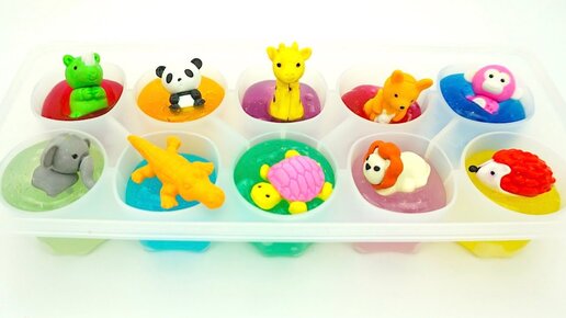 Мультики. Учим названия животных. Разноцветные лизуны для