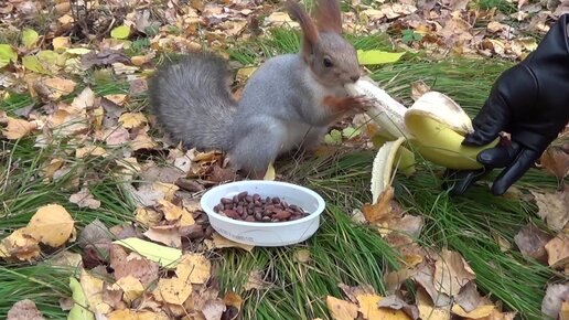 Банан для белочки лакомство. Представляю героиню сказок и любимых образов на праздничных новогодних открытках