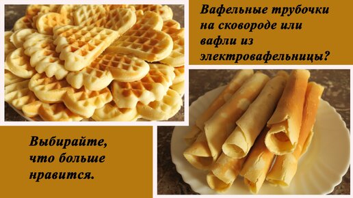 Выбирайте, что больше нравится: вафельные трубочки на сковороде или вафли из вафельницы.