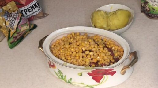 Салат с сухариками. Быстро, вкусно и подходит для праздничного стола