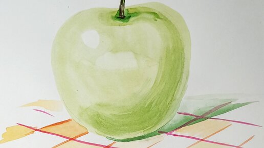 Как нарисовать яблоко на клетчатой скатерти акварельными красками.