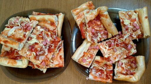 Готовые пиццу с ветчиной, ветчину у нас никто не ест. Пицца из неё получается вкусной.