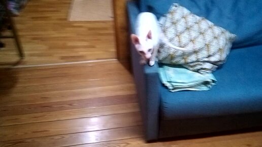 Кот с очень большими ушами во всей своей белоснежной красе.