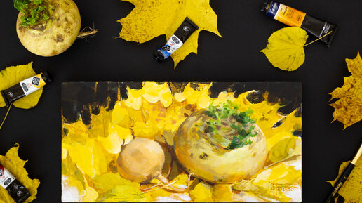#Рисованиеакрилом на холсте - осенний #натюрморт на Хэллоуин