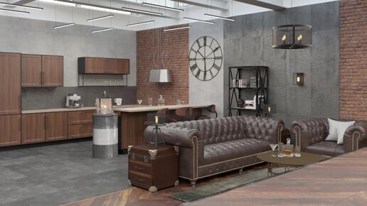 Дизайн-проект зоны отдыха в стиле лофт 166 м²