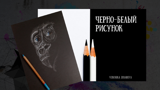 Рисуем на черной бумаге карандашами. Шимпанзе