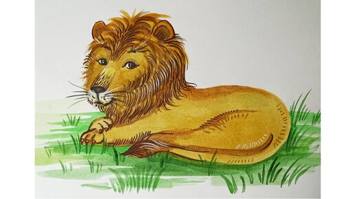 Добрый лев, рисуем акварельными красками.