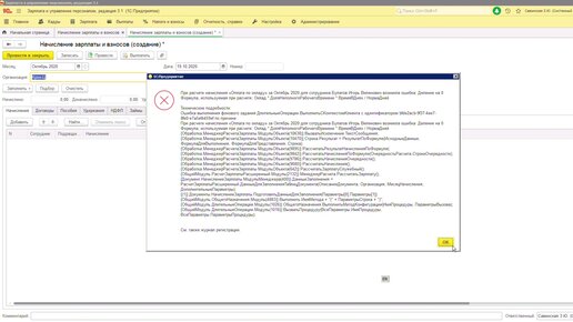 Ошибка: деление на 0 в «1С:Зарплата и управление персоналом»