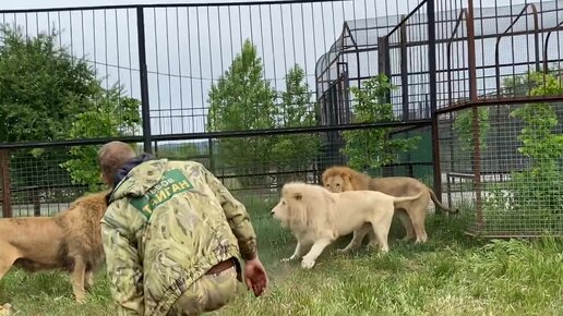 Человек-Лев разгоняет "тапком " ЧЕТЫРЕХ РАЗЪЯРЕННЫХ ЛЬВОВ!