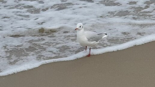 Стою рядом с чайкой, а она настолько голодная, что не улетает. Балтийское море