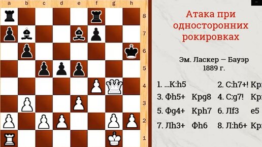 Э. Ласкер - В. Смыслов: 2 красивые партии с разбором - шикарное учебное видео (атака на короля при односторонних рокировках)