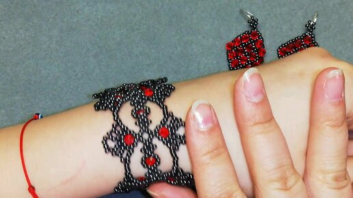 Японская техника плетения сарагуро браслет и серьги ромбики из чешского бисера