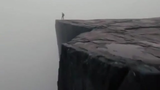 Крутые скалы в Норвегии во время туманности выглядят как кадры из фильмов о конце света .