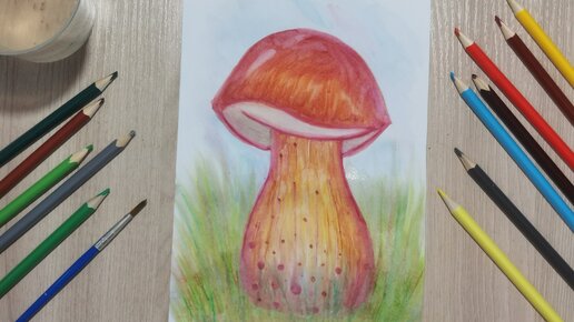 Как нарисовать гриб. Рисую акварельными карандашами!