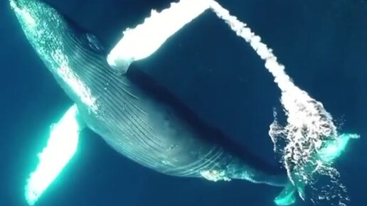 Наблюдение за китами у берегов Калифорнии с дрона.