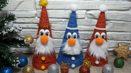 РОЖДЕСТВЕНСКИЕ ГНОМЫ из НИТОК. НОВОГОДНИЙ ДЕКОР СВОИМИ РУКАМИ. МАСТЕР-КЛАСС.