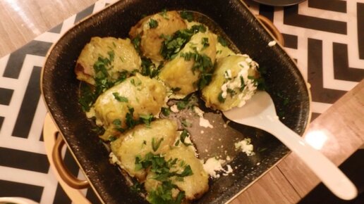 Картофельные клёцки со свиным фаршем под сметаной