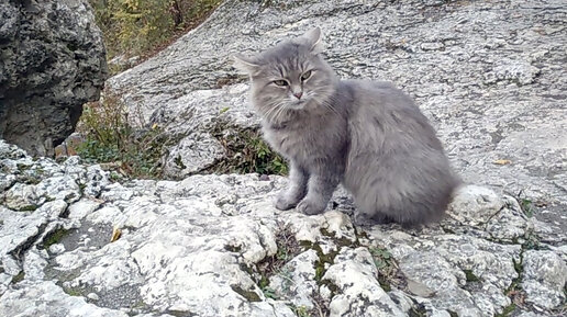 Посмотрите, какая дымчатая кошка живёт в необычных скалах ущелья.