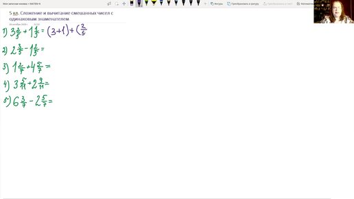 5 кл. Сложение и вычитание смешанных чисел с одинаковыми знаменателями