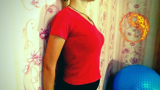 Упражнение для спины, которое нам показывали ещё в 1-м классе. Укрепляем спину у стенки