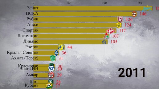 Топ 15 команд Российской Премьер Лиги по стоимости составов. Начиная с 2006 года.