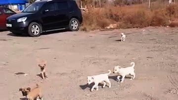 Щенки с Аксарайска. Здесь единственная трасса в город и опять выброшены щенки. Им повезло. Собак заметили и забрали