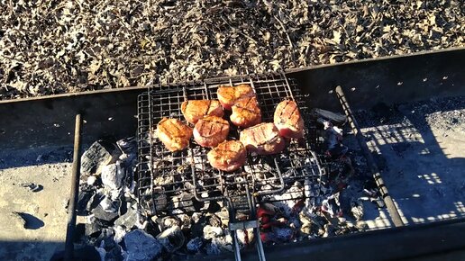 Далее: рулетики с сыром сулугуни в беконе на костре