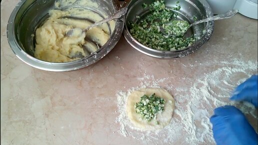 Нежные картофельные пирожки с зеленым луком и яйцом.
