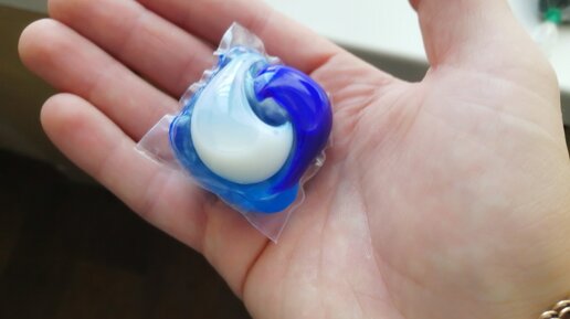 Растворимую капсулу "Tide" опустил в горячую воду. Смотрим как растворяется.