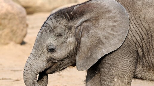 Пользователей Сети развеселил слоненок, балансирующий на камне