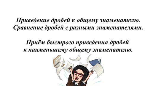 Математика. Приведение дробей к общему знаменателю. Сравнение дробей с разными знаменателями. Приём быстрого приведения к НОЗ.