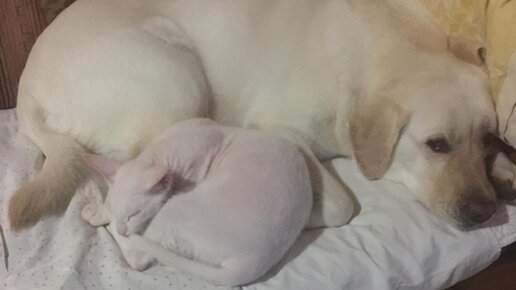 Дружба Донского сфинкса Томаса с собакой (лабрадор)