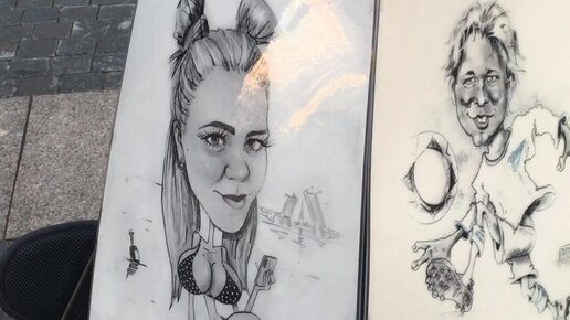 Портреты и шарж на заказ у Дворцовой площади, только будьте внимательны. Цифра 187 это не цена, а время рисования.