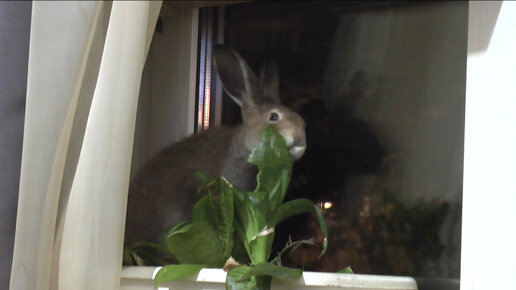 Заяш Шкварка доедает последние в доме цветы...
