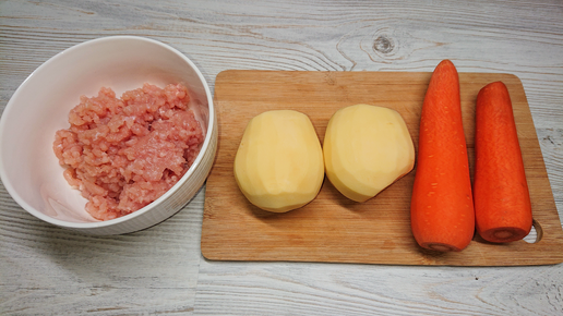 2 картофеля, 2 моркови, немного мяса и вкусный ужин готов