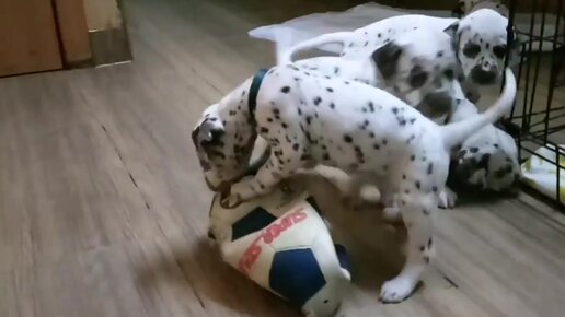 Щенки далматинца играются