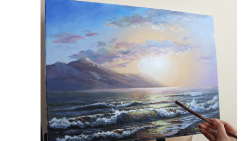 Подробный мастер-класс живописи акрилом. Как нарисовать море на закате.