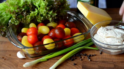 Яркий красивый сочный салат с помидорами черри и курицей