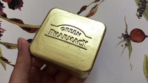 Золотой квадратный брусочек мыла. Хрустящий лак на мягкой текстуре.