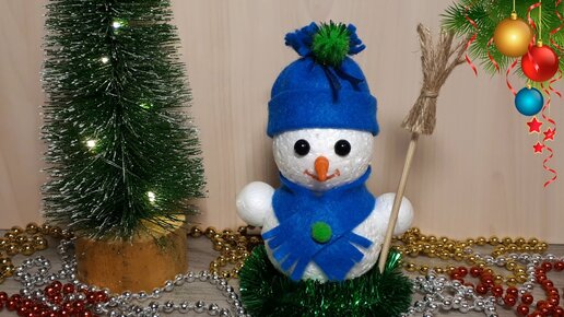 Новогодний снеговик из пенопласта своими руками, простой способ изготовления.