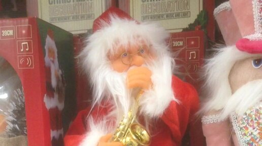 Забавный Дед Мороз с саксофоном
