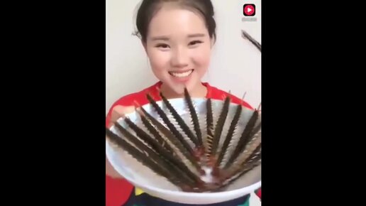 Китайская Девушка ест скорпионов, тараканов, гусениц