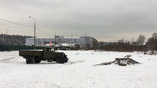 Как «полуторка» ГАЗ-АА едет по снегу?