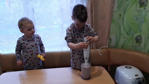 Малыши готовят клубничный смузи с бананом! Можно пить бесконечно! Очень легкий и полезный молочный коктейль.