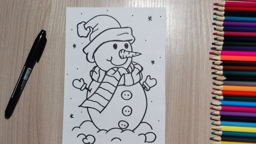 Как нарисовать снеговика. Лёгкий рисунок для срисовки