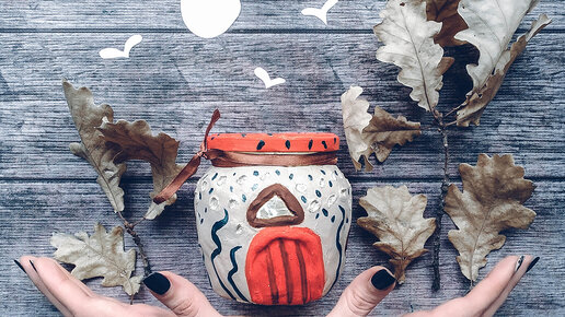 Декор банки. Светильник волшебный домик